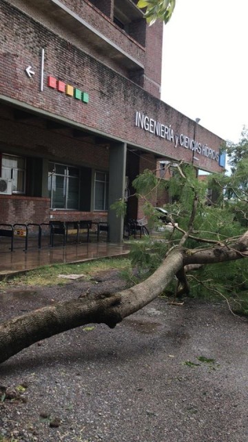 Durante el temporal que azotó a la ciudad el lunes por la madrugada y causó severos daños, se vieron afectadas seis facultades ubicadas en Ciudad Universitaria y en el centro de la capital provincial. Columnas de iluminación y árboles caídos; voladura de techos, zinguería de cubiertas y casetas de atención; rotura de cielo raso, carteles y vidrios son algunas de las incidencias causadas por las intensas lluvias -cuyo pico fue de 150 mm/h a las 3.50 horas del lunes- y los fuertes vientos que alcanzaron una velocidad máxima de 107,3 km/h del sector Sur.