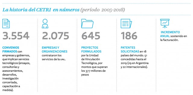 Si bien, la tarea de transferir en la UNL se inició varias décadas antes a la puesta en marcha del Cetri Litoral, la creación de esta unidad dio institucionalidad y especificidad a la vinculación tecnológica, e inauguró un modo de entender la tarea de la extensión de la Universidad, que junto a las misiones de docencia e investigación constituyen los pilares conceptuales e ideológicos de la Universidad Reformista.
