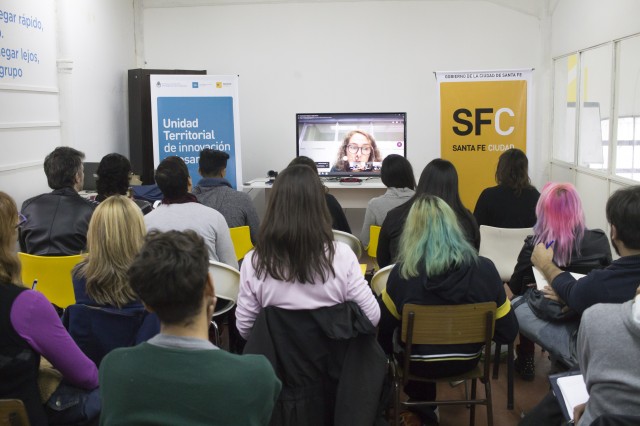 En el marco de esta convocatoria se realizó a mediados de junio el taller “Orientaciones para la elaboración de proyectos”, que estuvo a cargo de Claudia Castro, vicedecana de la Facultad de Arte de la Universidad Nacional del Centro de la Provincia (UNICEN), que integra el Fondo Regional de Tandil, Balcarce y Necochea. En función del carácter regional de la convocatoria, el taller se brindó por videoconferencia, lo que permitió que más de 70 personas participaran es simultáneo desde las diferentes localidades que abarca el Fondo Regional en la provincia de Santa Fe. Los artistas, artesanos y gestores, se encontraron en la sede de Santa Fe Activa, en la capital provincial; en la Casa del Emprendedor, en Sunchales; en el Centro Universitario Gálvez, que tiene la UNL en esa localidad; en el Campus FAVE, en Esperanza; y en la Sala Multimedial del Centro Cultural Municipal de Avellaneda.