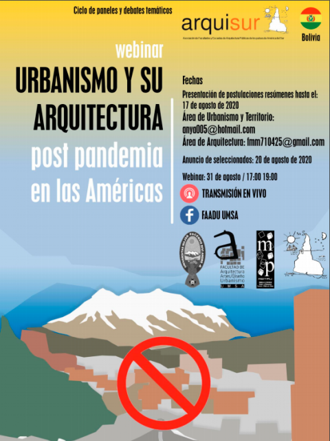 Se convoca a docentes en arquitectura y urbanismo de las Facultades miembros que conforman el arquisur, a presentar proyectos que se estén realizando en las áreas de conocimiento de las facultades y que enfrentan la post pandemia en las Américas.