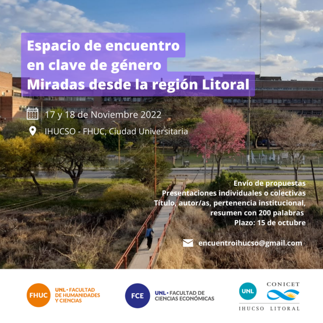 El "Espacio de encuentro en clave de género: miradas desde la región litoral" tendrá lugar los días 17 y 18 de noviembre en el IHUCSO - Sede FHUC-UNL.
