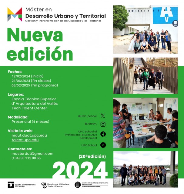Más información: https://www.talent.upc.edu/esp/estudis/formacio/curs/205000/master-desarrollo-urbano-territorial-gestion-transformacion-ciudades/