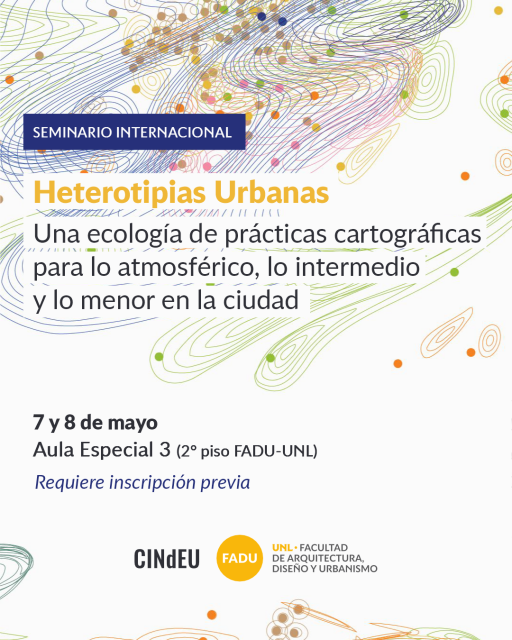 Los días 7 y 8 de mayo, la Facultad de Arquitectura, Diseño y Urbanismo de la UNL será sede del Seminario Internacional Heterotipias Urbanas. Una ecología de prácticas cartográficas para lo atmosférico, lo intermedio y lo menor en la ciudad, organizado por el Centro Interdisciplinario de Estudios Urbanos (CINdEU) y la FADU.